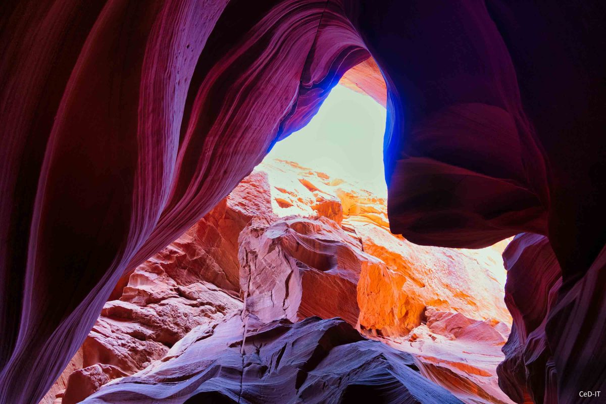 Puis direction Page, le célèbre Horseshoe Bend en forme de fer à cheval et Antelope Canyon avec ses couleurs incroyables à l’intérieur. Baignade et détente au Lake Powell, vraiment dépaysant.